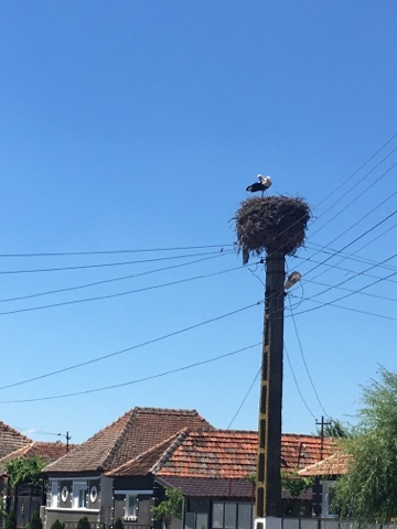 These stork nests are pretty common. We saw a lot of them in Slovakia too. I heard that if a stork builds a nest by your property, it will bring you good luck.